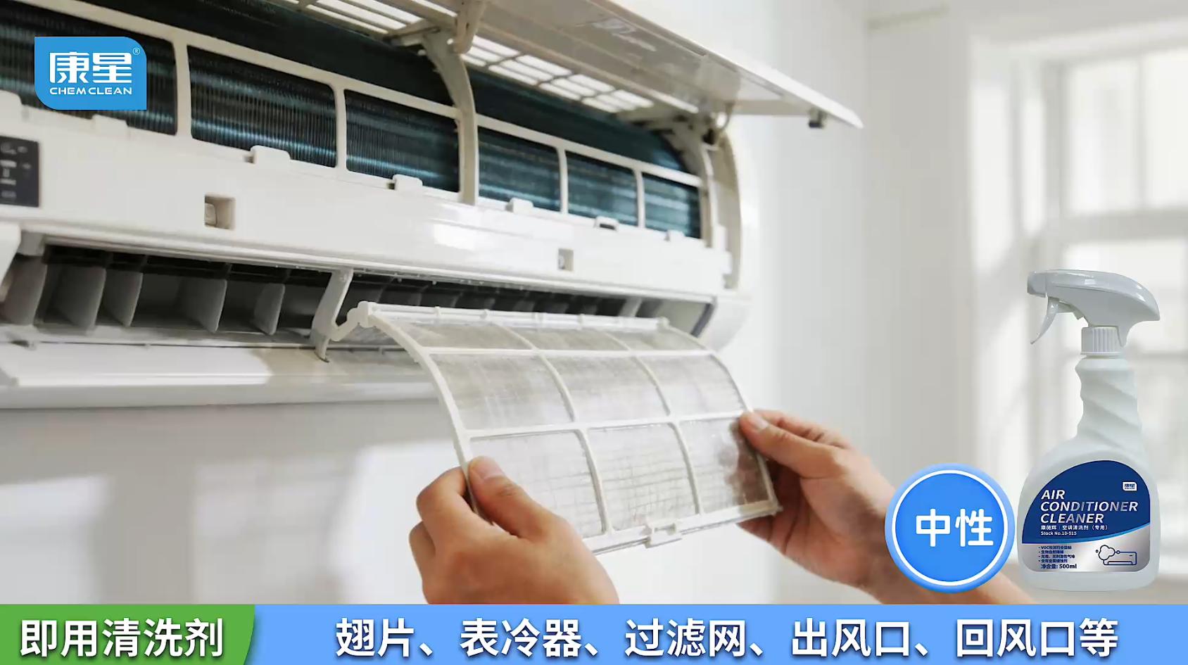 本品康施辉采用现代生物配方技术,是可自然降解的即用型室内空调清洗液,主要用于清洗翅片、表冷器、过滤网、出风口、回风口、设备外壳等。根据清洗对象,喷洒后等待若干分钟过水冲洗干净。也可通过机器运行时产生的冷凝水自动将污垢排到室外,无需过水。它可快速有效去除污物、油脂及其它轻度污垢。
